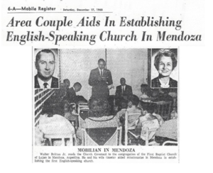 7 “Area Couple Aids in Establishing English-Speaking Church in Mendoza,” Mobile Register, December. 17, 1960, 6-A.